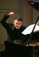 Zum Dirigieren – es wird jetzt immer mehr, und ich will das auch mehr und mehr machen, es ist eine Entdeckung für mich. Klavier spielen und Dirigieren sind zwei völlig verschiedene Arten des Musikmachens, die aber nicht so unterschiedlich sind, dass sie in Konkurrenz untereinander stehen, außer eine rein technische und praktische Frage – wie teile ich mir die Zeit ein, um genug zum Üben zu kommen.