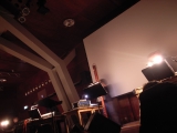 AX.WHO. (2009 UA) hieß das im zweiten Teil des ersten Konzerts gebotene Stück der Komponistin Pia Palme, sonst auch gerne tätig an Subbassblockflöten, diesmal Aerophone & Elektronik. Die weitere aufwändige Besetzung für das vielleicht beste Stück bei diesem e-may-Festival: Margarethe Deppe, Cello, Alexander J. Eberhard, Viola , Electric Indigo, Synthesizer, Judith Unterpertinger, Innenklavier, Bernhard Ziegler, Kontrabass, Yoshie Maruoka, Performance und -konzept. Dazu: Armin Anders, Künstlerische Beratung, Toshio Nakae, Texte, Gen Seto, Performance Assistent , Velli Vandulaki, Papierkunst.