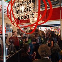 Am von Heinrich Schläfer organisierten und von mica-music austria infotechnisch betreuten österreichischen Gemeinschaftsstand herrschte reges Treiben: Im dem einem Wiener Kaffeehaus nachempfundenen offenen Kommunikationsbereich rund um die legendäre Kaffeemaschine trafen sich die angereisten österreichischen VeranstalterInnen, Agenturen und Labels mit ihren internationalen GeschäftspartnerInnen, und am Infodesk wurden die zahlreichen BesucherInnen mit Fachinformationen zur österreichischen Jazzlandschaft bis hin zu touristischen Auskünften versorgt – frei nach dem Motto: wo gibt’s das beste Jazzfestival in schöner Landschaft, dort will ich nämlich Urlaub machen! Perfekte Ergänzung zu diesen Gesprächen: Der anlässlich 20 Jahre mica-music austria erschienene Reiseführer „Austrian Heartbeats“, der durchwegs Neugier auf mehr machte und sicher den einen oder anderen Nachahmer in Europa finden wird.