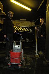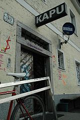 Wenn man von der KAPU in Linz spricht, muss man eigentlich fast von den KAPU-Projekten sprechen: Neben der KAPU als Location gibt es das hauseigene Magazin „Kapuzine“, ein Tonstudio, einen Ausstellungsraum und einen Kinosaal, der im März 2012 zum dritten Mal mit einem eigenen Filmfestival bespielt wurde. Auch geht die KAPU mit aktionistischen Projekten gelegentlich in die Straßen von Linz, wie zuletzt für die Aktion „Die neue Light-Kultur“, welche auf die prekären Verhältnisse der freien Kulturszene aufmerksam machte. Das „Herzstück“ der KAPU ist jedoch der Veranstaltungsraum und dies seit fast dreißig Jahren. Die KAPU-Gründung 1984 ist Teil der Geschichte der alternativen Linzer Szene, welche bis heute produktiv nachwirkt – dokumentiert im Buch und darauf basierenden Dokumentarfilm „Es muss was geben“. Lag in den 1980ern der musikalische Fokus auf Hardcore-Punk und dessen Ausläufern, so veranstaltet die Location heute neben gitarrenlastigen Konzerten insbesondere auch viele Hip-Hop-Shows. Der umtriebigen Szene- und Bookingarbeit von Philipp Kroll – besser bekannt als Flip von Texta – ist zu verdanken, dass sich hier eine spannende Community gebildet hat. Die KAPU wird von einer offenen Betriebsgruppe gestaltet und abgewickelt, von denen die meisten – ca. ein Pool von 30 Leuten – ehrenamtlich tätig sind. Zu den wenigen fest Angestellten gehören unsere Interviewpartner, der Geschäftsführer Christian „Hasi“ Haselmayr und der Geschäftsführerstellvertreter Günther „Günsch“ Ziehlinger. Deren Aufgaben reichen von „Bürowissenschaften“, wie sie es nennen, bis Booking, Mitarbeiterkoordination und gelegentlichem Putzen – wie das Foto dokumentiert. Das Interview führte Simone Mathys-Parnreiter.