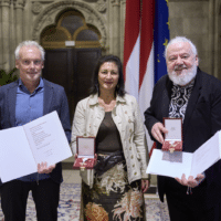 Wien (OTS) –  Am gestrigen Montagnachmittag, 16.09., verlieh Veronica Kaup-Hasler, Stadträtin für Kultur und Wissenschaft, im Namen des Bürgermeisters Michael Ludwig das Goldene Verdienstzeichens des Landes Wien an Musiker, Komponist und Poet Marwan Abado sowie an Musiker, Komponist und Maler Christian Muthspiel. Neben zahlreichen Freund:innen …