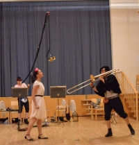 Mit Mike Svoboda hat das „Sonus Brass“ bereits zusammen gearbeitet, deshalb folgen die Musiker seinen Qualitätsansprüchen gerne und engagiert. „Er hat das perfekte Gespür für das ‚In-Szene-setzen’ von unseren Instrumenten, arrangiert einzigartig und macht einen fantastischen Musikdirektor“, schwärmt Stefan Dünser. „Er hat ein riesiges Repertoire an unüblichen Klängen, zum Beispiel Atemgeräuschen entwickelt, die er im Stück alle einsetzt. Sie tragen als Geräuschkulissen zum musikalischen Reichtum und Verständnis des Stückes bei. Alles ist penibel genau notiert und erarbeitet.“