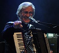 „Die besondere Naivität der Wienerlieder“ hat es dem Professor angetan. Berühmt sind sein „S’Vogerl am Bam“ oder „Herrgott aus Sta“ für den gleichnamigen Heurigen. Ganz „ohne Sta“ geht’s aber auch, denn, vom Agrarriesen Monsanto derweilen noch unentdeckt, dürfte der Doyen des Wienerliedes aus Liebe an der Entwicklung einer Kirschbaumsorte für Zahnlose, Spuckfaule und die Schwarzwälderkirschindustrie arbeiten („I liassat Kirschn fia di wachsen ohne Kern“). So findet man den Herrn Karl Hodina nicht auf Facebook und Konsorten (es gibt auch keine Homepage), aber gerne immer wieder bei Wien im Rosenstolz und natürlich beim Akkordeonfestival, und zwar schon sehr bald. Der Herrgott wird schon wissen, auf welchen Stein er da die Zukunft des Wienerliedes gebaut hat, auf jeden Fall auf einen, der mit seinem ganzen Herzen darin aufgeht. Guter Plan C. Das (und der) Beste, das diesem Genre passieren konnte und erfreulicherweise Ansporn für viele Junge und neue Alte, es ihm gleich zu tun.