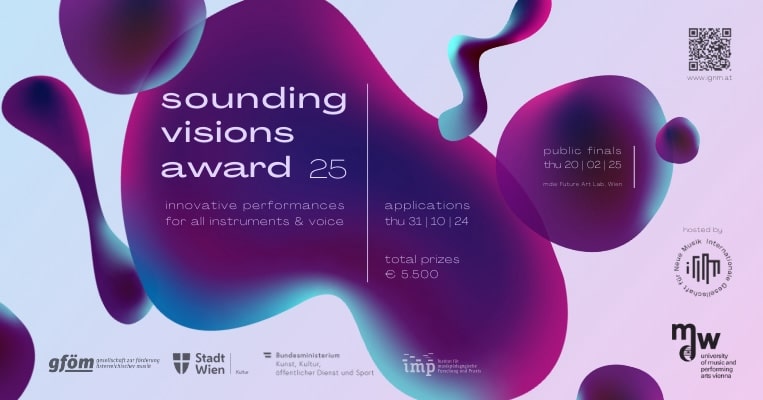 Wie klingt deine Vision? Bewirb dich für den Interpretationswettbewerb Sounding Visions mit einem innovativen Konzertformat, das spannende Hörerlebnisse garantiert: Keine Pflichtstücke, keine Mindestanzahl an Werken, Fokus auf Kompositionen und Klangkunst des 20. und 21. Jahrhunderts.