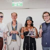 Bild XA – Export Award 2023 Gewinnerin BEX mit FARCE, Franz Hergovic (Austrian Music Export) und Thomas Heher (Waves)