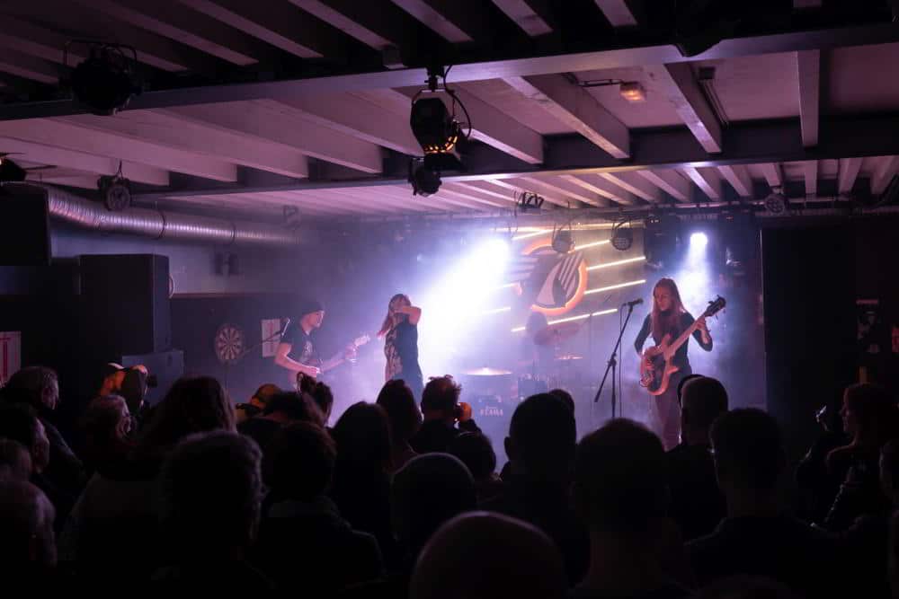Und wie sieht es auf der anderen Seite der Bühne, im Publikumsraum aus? Zock, der Drummer der Petrol Girls, erklärte: „EUROSONIC 2019 bedeutete für uns eine gute Möglichkeit, einmal vor fast durchwegs ungewohntem Publikum zu spielen, was vor allem für unsere Sängerin Ren eine seltene und spannende Herausforderung war. Innerhalb unserer Szene sind es Konzertbesucherinnen und -besucher eher gewohnt, zwischen den Songs politische Ansagen zu hören, was bei einem Showcase-Festival eher ungewöhnlich scheint.“ Auch die „Artist Area“ dürfte den Petrol Girls zugesagt haben, besonders als „[…] wir nach einem stressigen Reisetag die überaus großzügige ‚Artist Area‘ samt Künstlerbooten aufgefunden haben. Mit solch angenehmen Gegebenheiten werden wir sonst recht selten verwöhnt. Das Poolcentrum als Venue war auch eine angenehme Überraschung – hatte definitiv die perfekte Größe und Stimmung für unsere Show.“