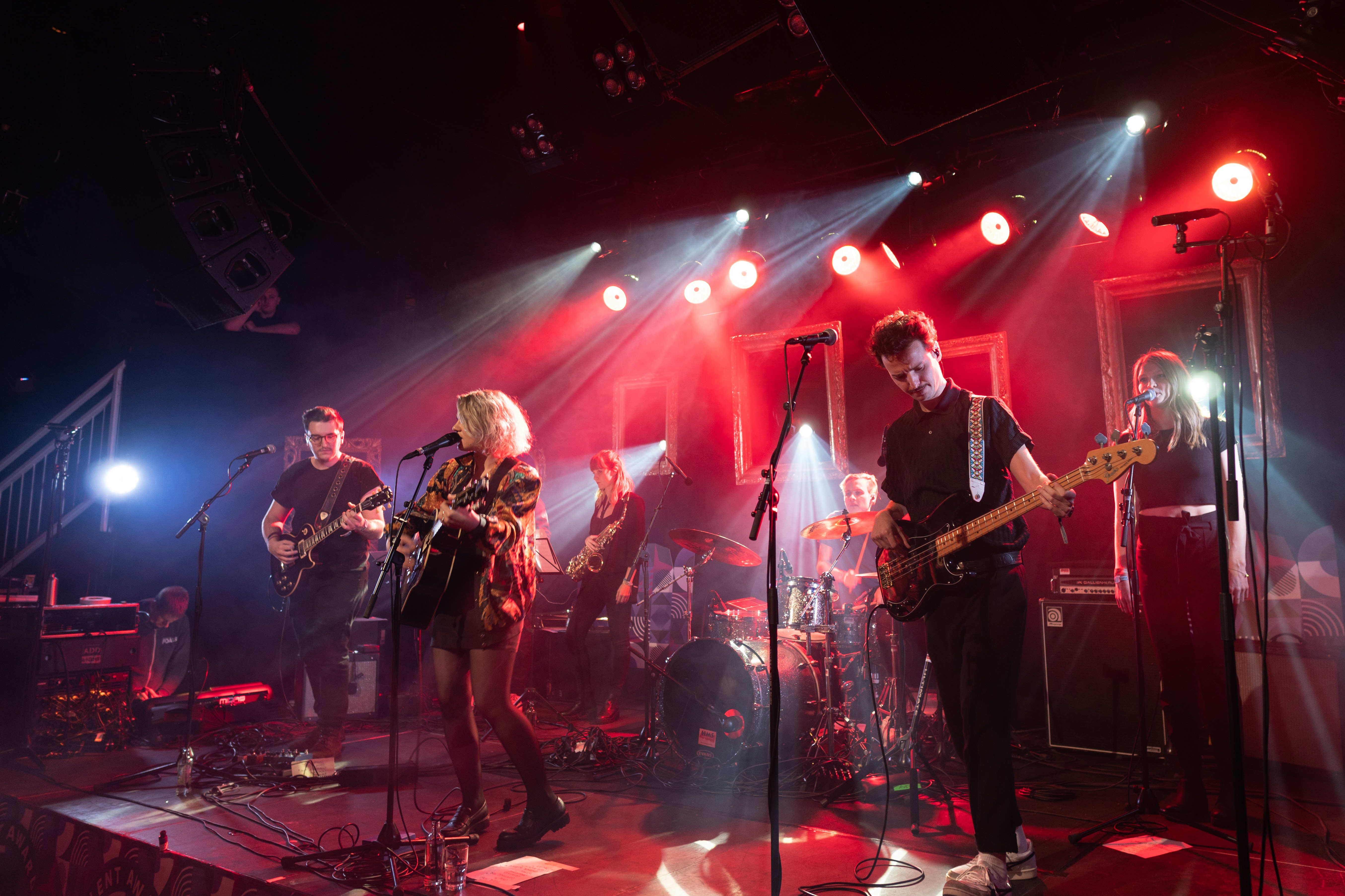 Im Groninger Forum, einer Location, die sonst als Kino genutzt wird, hatten 5K HD eine riesige Bühne zur Verfügung. Das hochkarätig besetzte Ensemble, bestehend aus den renommierten Musikern der österreichischen Band Kompost 3, Martin Eberle (Bläser), Benny Omerzell (Keys), Manu Mayr (Bass) und Lukas König (Schlagzeug) sowie der Sängerin Mira Lu Kovacs von Schmieds Puls lieferte in dem gut gefüllten Saal, in dem sich einige internationale Festival-Booker eingefunden hatten, einen grandiosen Auftritt.